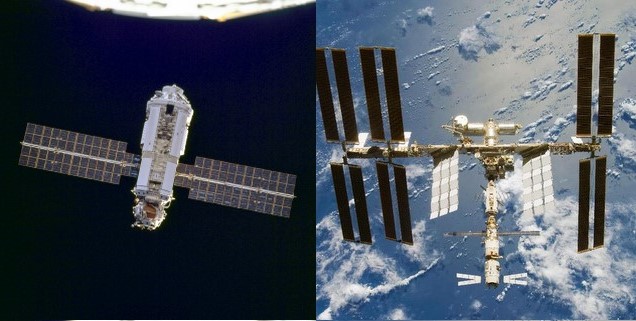 , and today I'd like to share some of my favorite images from the past ten years of station construction. Above is a collage of the Zarya module a decade ago, (left) and the station's current configuration.