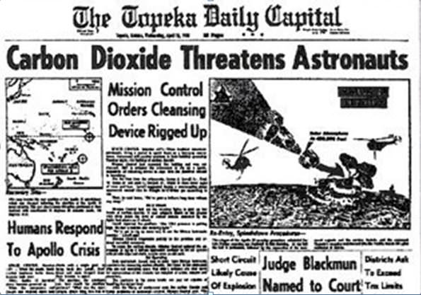 The Apollo 13 accident crippled the spacecraft, taking out the two main oxygen tanks in the Service Module. While the lack of oxygen caused a lack of power from the fuel cells in the Command Module, having enough oxygen to breathe in the lander rescue craft really wasn't an issue for the crew. But having too much carbon dioxide (CO2) quickly did become a problem.