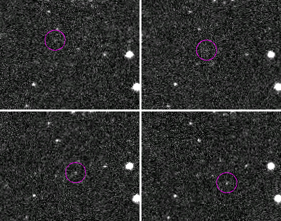 Then, the observers run specialized software to examine their images for any star-like objects that are moving from one image to the next. The software removes any candidates that correspond to known objects or main-belt asteroids.
