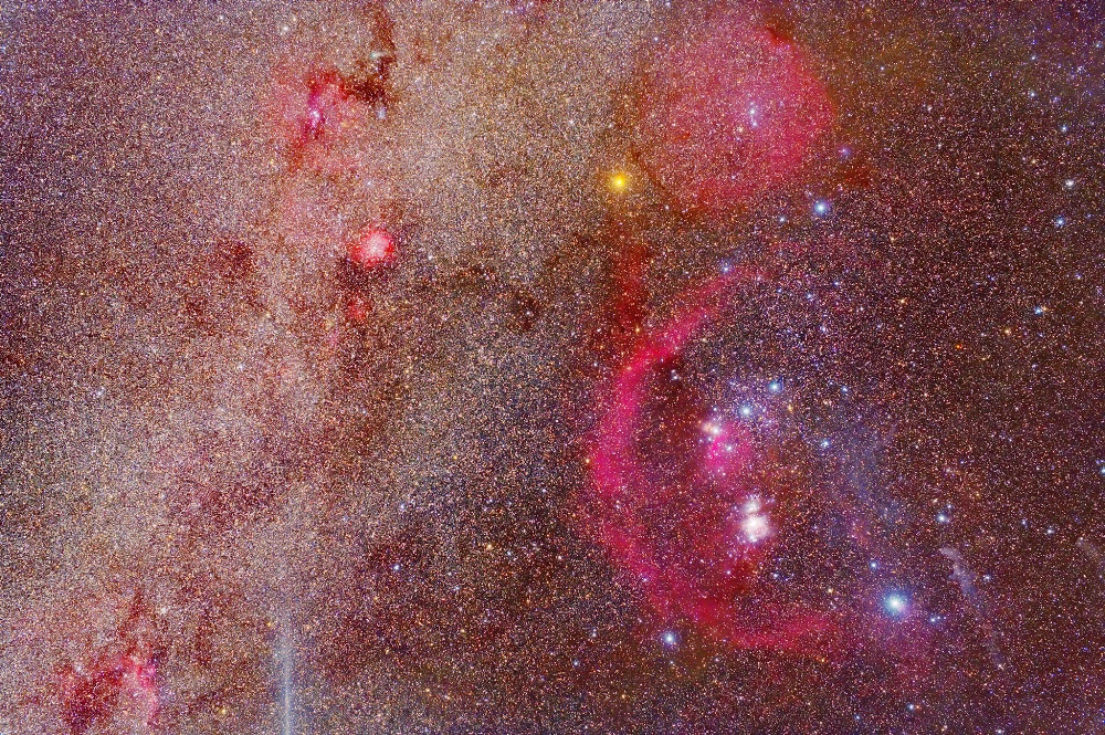 6- Passes near (less than one degree) the +4.4 magnitude star Chi Orionis.