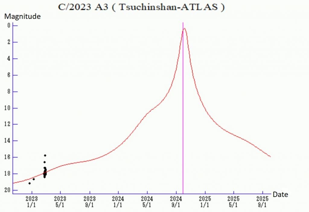 The discovery announcement came out of CBAT (The Central Bureau for Astronomical Telegrams) Number 5228 released on February 28th. The comet was sighted independently by the ATLAS (Asteroid Terrestrial-impact Last Alert System) automated sky survey, and earlier data from the Tsuchinshan (Zijinshan or ‘Purple Mountain ') observatory in China, hence the double moniker. The comet turned up in earlier observations from Purple Mountain Observatory's XuYi Station going back all the way to January 9th, 2023, that's why it ended up with an A3 designation, which is usually reserved for comets discovered in early January.