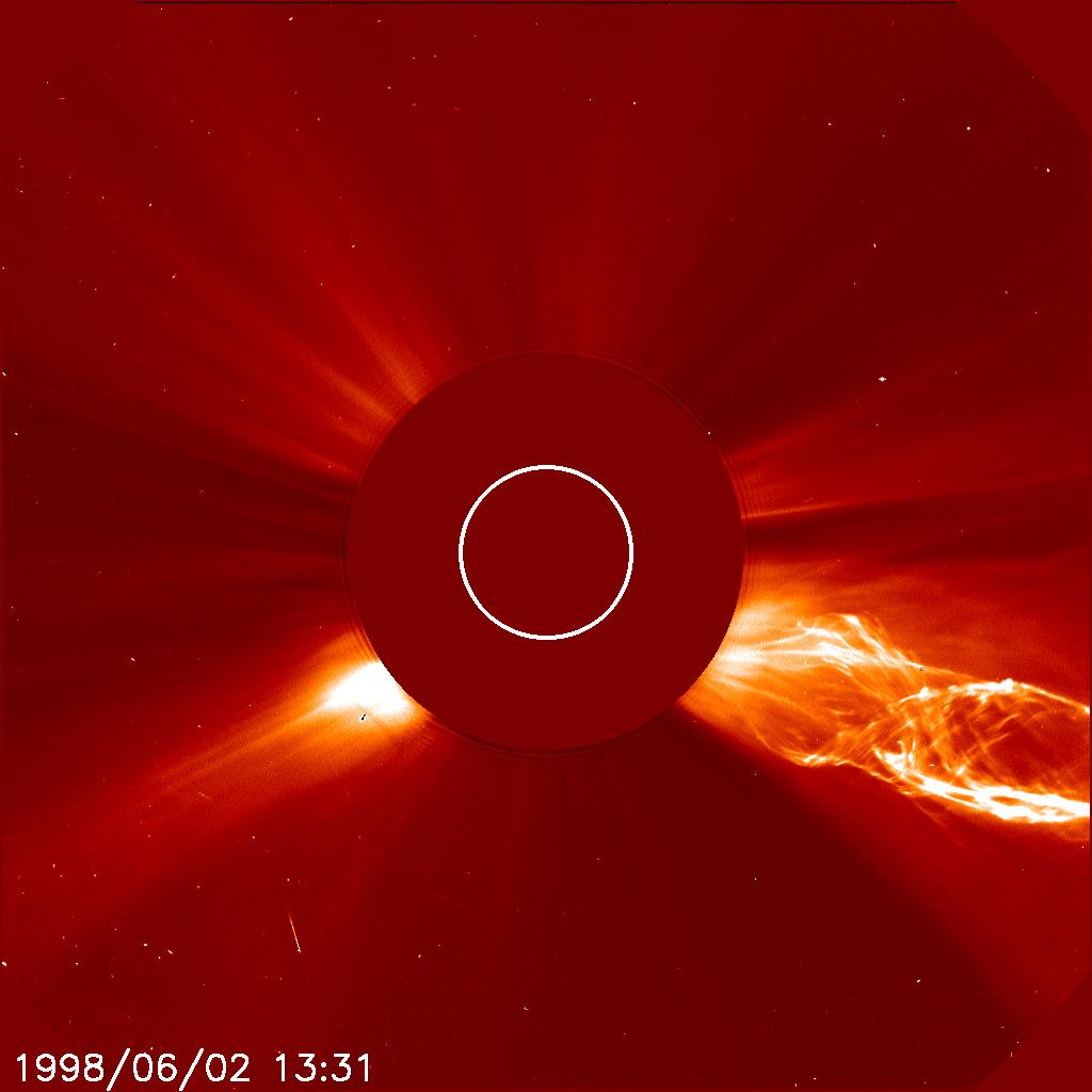 "There have been so many mind-blowing images that I absolutely cannot pick a single one," he said. But he highlighted two favorites. The first is one from the LASCO C2 coronagraph, and was taken 1998, below. It shows a stunning helical structure in a coronal mass ejection (CME).