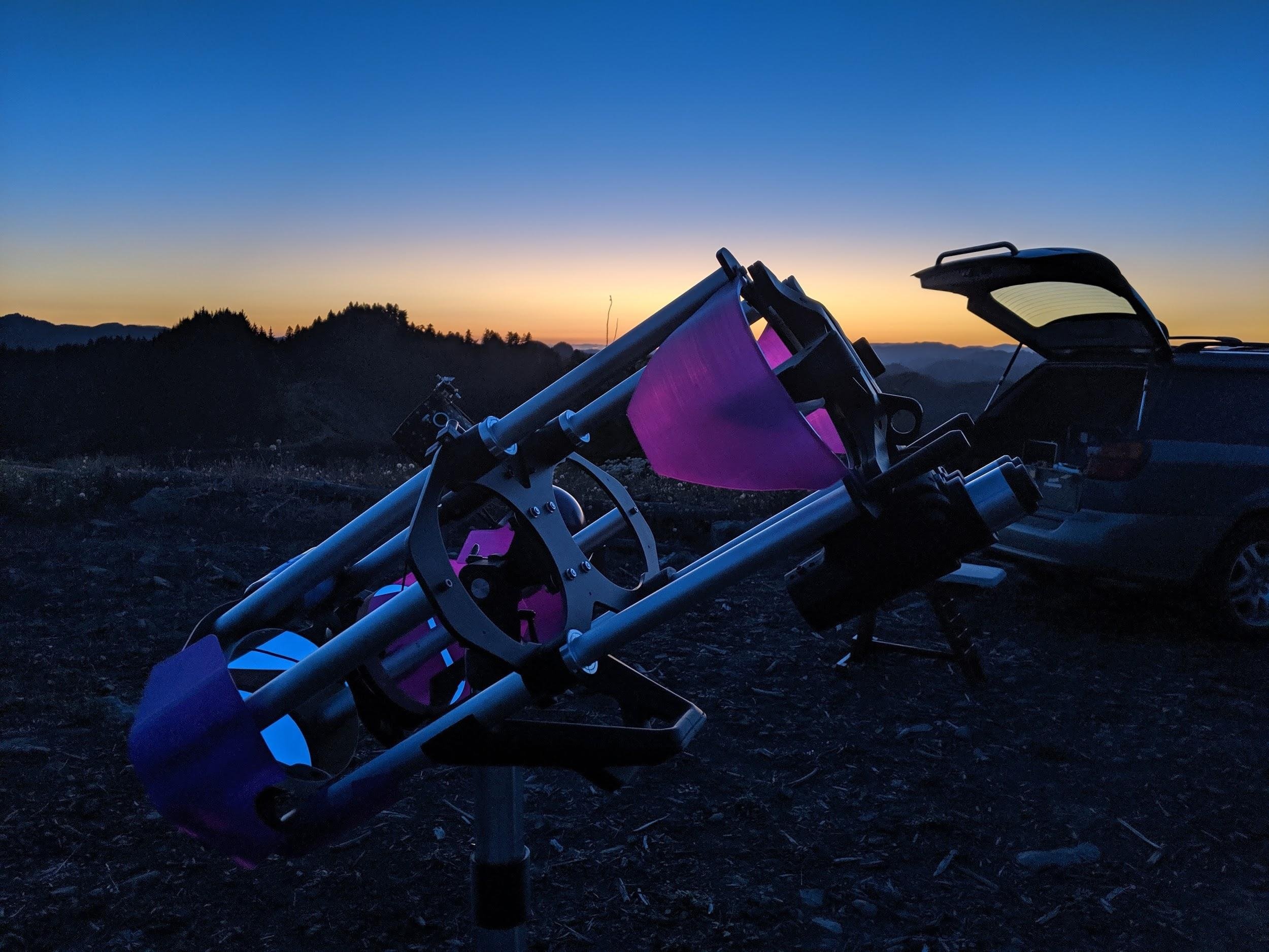 Robert: "Besides none of the parts already existing? Keeping six mirrors perfectly aligned from horizon to zenith is a more complicated dance than the usual two, especially since the scope collapses in half to save space for transportation and storage. Balancing factors like stiffness, durability, lightweight, manufacturability, and user interaction while maintaining that alignment is a tug-of-war. Then giving people the ability to touch up the alignment without rage-quitting is something no one had really addressed 100%."