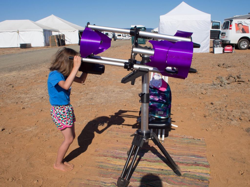Guiding people to the eyepiece in the dark is always a continual challenge at star parties. We've found that, after over a half century of observing, reduced night vision, 'floaters,' and an overall aging of our 'Mk-1 eyeballs' have also taken their toll. Binoculars do add a more comfortable 'trueview' way to enjoy the sky... but they bring their own challenges, including diopter spacing (the distance between the pupils of the eyes is slightly different for everyone) individual focusing for each eye, and more.