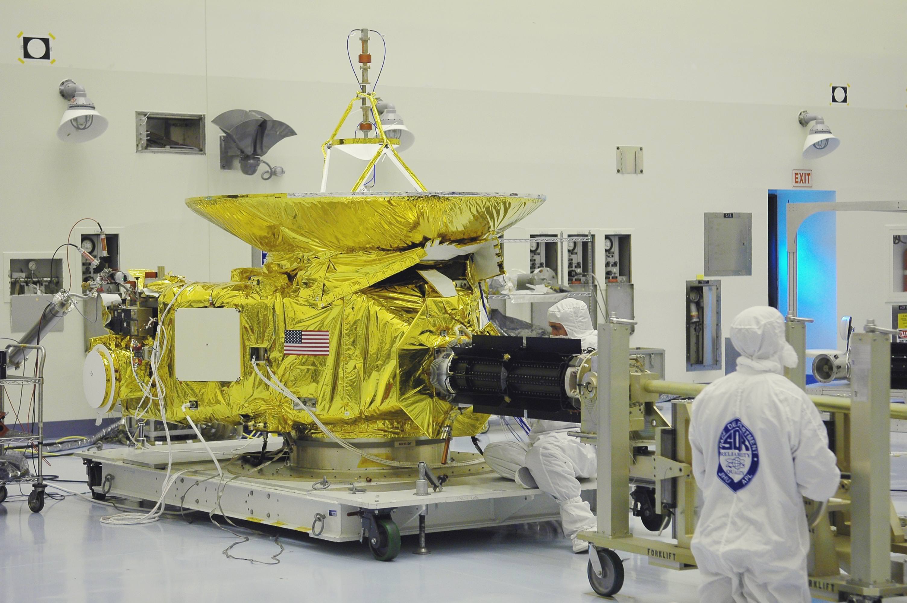 A close-up of New Horizons encapsulated in its launch fairing shortly after its RTG was installed. Image credit: KSC/NASA[/caption]