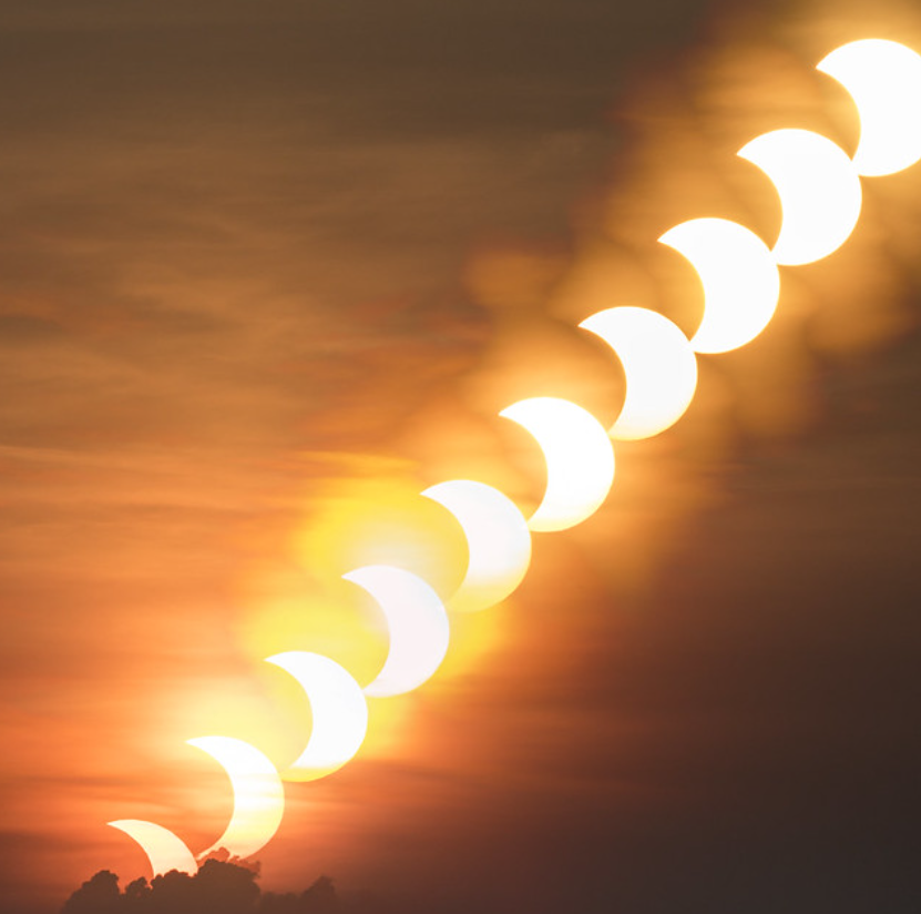 An eclipse at sunrise also offers a chance to nab the view on the horizon along with foreground objects. A DSLR equipped with a dense variable neutral density (ND) filter (15- to 20-stop) works great for this. Again, you'll be using this for the camera only, NOT for visual use. Physically block off the camera's view finder to avoid accidentally looking through it, and keep the ND filter on the lens and start with the very darkest setting. A bright Sun can ruin an exposed camera sensor as well.