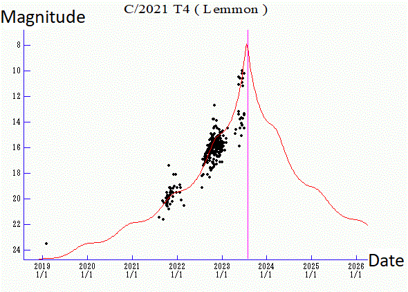 The comet was discovered by the Catalina Sky Survey based on Mount Lemmon outside of Tucson, Arizona on the night of October 7th, 2021, slowly moving through the constellation of Taurus the Bull. Shining at magnitude +20 and 6.4 Astronomical Units (AU, 595 million miles or 958 million kilometers) distant out past the orbit of Jupiter at the time of discovery, astronomers soon realized that Comet T4 Lemmon could be a moderately bright binocular object in the summer of 2023.