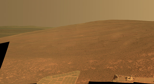 "Murray Ridge is the highest hill we've ever tried to climb with Opportunity," said the mission's principal investigator, Steve Squyres of Cornell University, Ithaca, N.Y. The ridge has outcrops with clay minerals detected from orbit. It also provides a favorable slope for Martian winter sunshine to hit the rover's solar panels, an advantage for keeping Opportunity mobile through the winter.