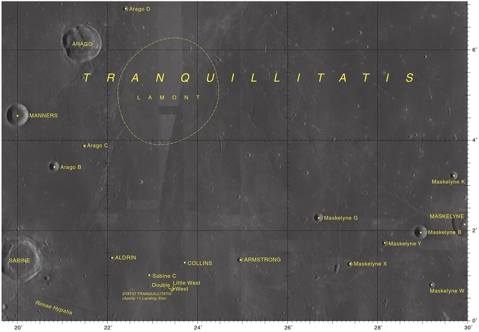 *Location of the site for the analysed structure—a hypothetical crater near a 0.67 latitude North and a 23.47 longitude East within the selenographic coordinate system. Credit: NASA*