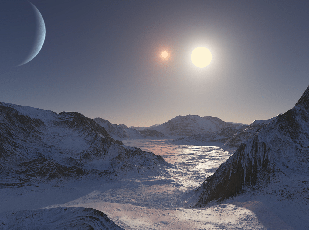 What would it look like on a hypothetical icy moon orbiting the exoplanet Kepler 47c? Perhaps something like this.