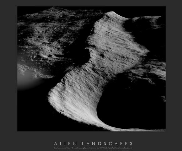 [caption id="" align="alignnone" width="580" caption="Lunar Landscape. Credit: LROC; Goddard Spaceflight Center, U of AZ, 3-d rendering and modeling by Bernhard Braun."]