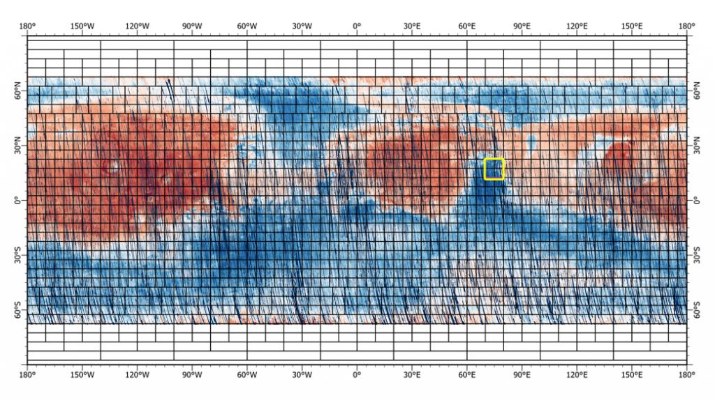 We already have the first portions of the new map. The final version of the map will contain about 51,000 540-kilometre-long strips, contained in 1764 tiles. In mid-June, NASA released 48 of those tiles, and they cover five of Mars' most scientifically interesting regions.