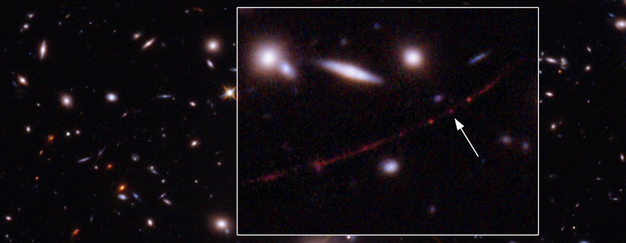 Lead image: The star nicknamed Earendel, indicated by the white arrow, is positioned along a ripple in spacetime that gives the image extreme magnification. Source: Hubblesite.org. Credit: NASA / ESA / Brian Welch (JHU) / Dan Coe (STScI) / Alyssa Pagan (STScI).