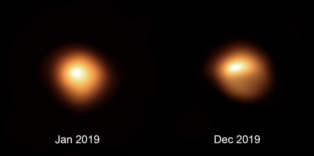 Betelgeuse is Still dimming! - Universe Today Video by Fraser CainA Star's variability is either extrinsic or intrinsic. Extrinsic variability is a change in brightness due to an external source. Eclipsing binary stars is a common extrinsic variability as one star blocks the light from a companion star. Intrinsic variability is caused by something within the star itself. The recent research on Betelgeuse, inspired by the star's dramatic dimming in late 2019, sought to determine if the event was intrinsic or extrinsic in nature. Updated observations of Betelgeuse's regular pulses allowed researchers to confirm that the primary cause of variability is something called the “Kappa Mechanism” which destabilizes the star's equilibrium essentially causing Betelgeuse to "breath" as it swells and shrinks in size and brightness.