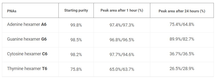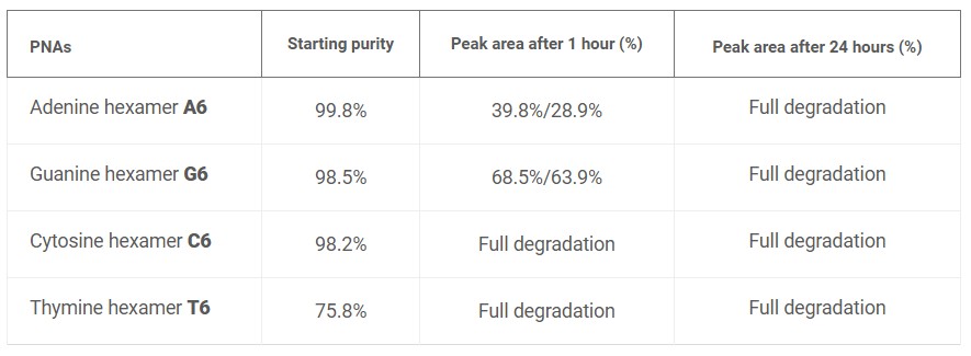 "PNA hexamers undergo between 0.4 and 28.6% degradation in 98% (w/w) sulfuric acid at ~25°C, over the span of 14 days, depending on the sequence, but undergo complete solvolysis above 80°C," the researchers write. A hexamer is a molecule made up of six smaller subunits, in this case, six nucleic acid building blocks linked together.