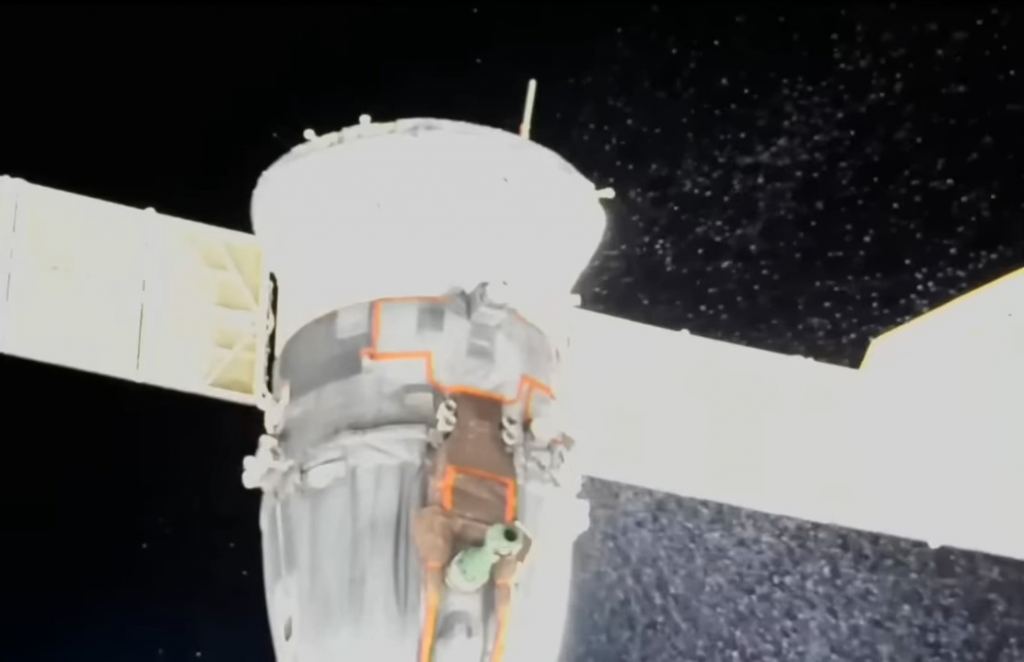 The passengerless Soyuz docked at the station's Poisk module at 7:58 p.m. EST on February 25, after launching on February 23 from the Baikonur Cosmodrome in Kazakhstan. Roscosmos officials said they had determined that the leak resulted from a small hole caused by an impact by a micrometeoroid. The plans to launch a replacement Soyuz were called into question when a Russian Progress cargo ship experienced a similar coolant leak on February 11, but all has gone well so far with the new Soyuz.