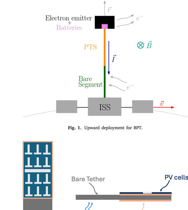A new paper from Giovanni Anese, a PhD student at the University of Padua, and his team focuses on such a concept. It uses a new idea called a Bare Photovoltaic Tether (BPT), which is based on an older idea of an electrodynamic tether (EDT) but has some advantages due to the addition of solar panels along its length.