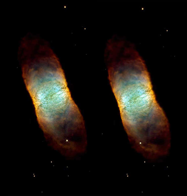 In the meantime, many of you will recognize these filaments in this planetary by its more common name - the "Retina Nebula" - the third to have its spatial distribution of H2 and CO emissions mapped to prove that the equatorial density is caused by the high-velocity outflow of the progenitor AGB star - and perhaps the twinkle in its eye could have either the beginnings or the end of what may have been planetary systems. Says R. Sahai: "It is suggested that the equatorial tori observed or deduced in IC 4406 results from 'born again' disks formed through the destruction of planetary systems at the end of the AGB evolutionary phase."