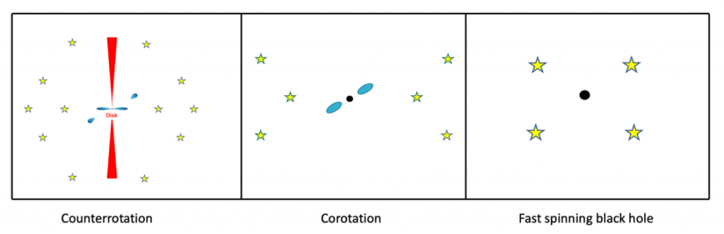 Sometimes a black hole's accretion disk is counter-rotating relative to the black hole itself as a result of a merger, and that affects the feedback and the jets. "Counterrotation is associated with various general relativistic effects that maximize the power and collimation of the jet," Garofalo writes. "This type of jet is funnelled through the cold gas and pushes it into states of higher densities, thereby triggering star formation."