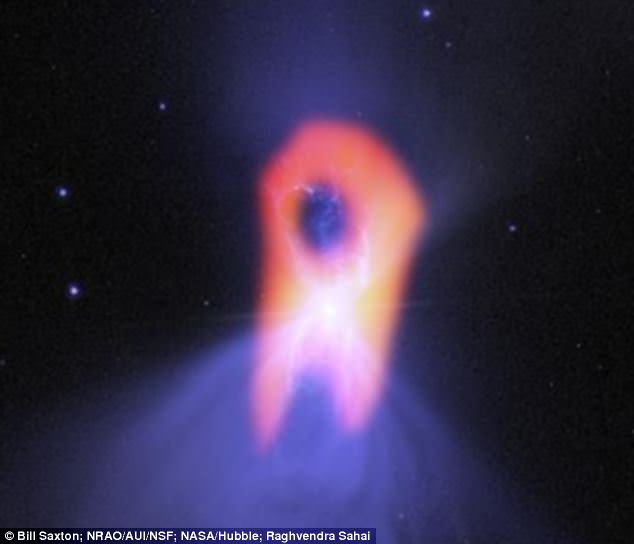 Credit: NASA/ESA[/caption]"When astronomers looked at this object in 2003 with Hubble, they saw a very classic 'hourglass' shape," commented Sahai. "Many planetary nebulae have this same double-lobe appearance, which is the result of streams of high-speed gas being jettisoned from the star. The jets then excavate holes in a surrounding cloud of gas that was ejected by the star even earlier in its lifetime as a red giant."