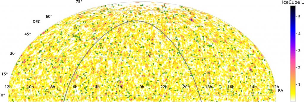 Quasars are distant supermassive black holes. During the early universe, many of these black holes were extremely active. The hot material surrounding these black holes can emit everything from x-rays to powerful bursts of radio light. In this new work, the team analyzed 7 years of data from IceCube and found an interesting correlation between quasars and high-energy neutrinos.