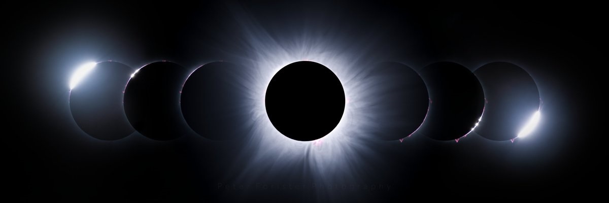 Peter Forister caught the eclipse from central Indiana. "It was my second totality (after 2017 in South Carolina), so I knew what was coming," Forister told *Universe Today*. "But it was still as incredible and beautiful as anything I've ever seen in nature. The Sun and Moon seemed huge in my view—a massive black hole (like someone took a hole punch to the sky) surrounded by white and blue flames streaking out. Plus, there was great visibility of the planets and a few stars. The memory has been playing over and over in my head since it happened—and it's combined with feelings of awe and wonder at how beautiful our Universe and planet really are. The best kind of memory!"