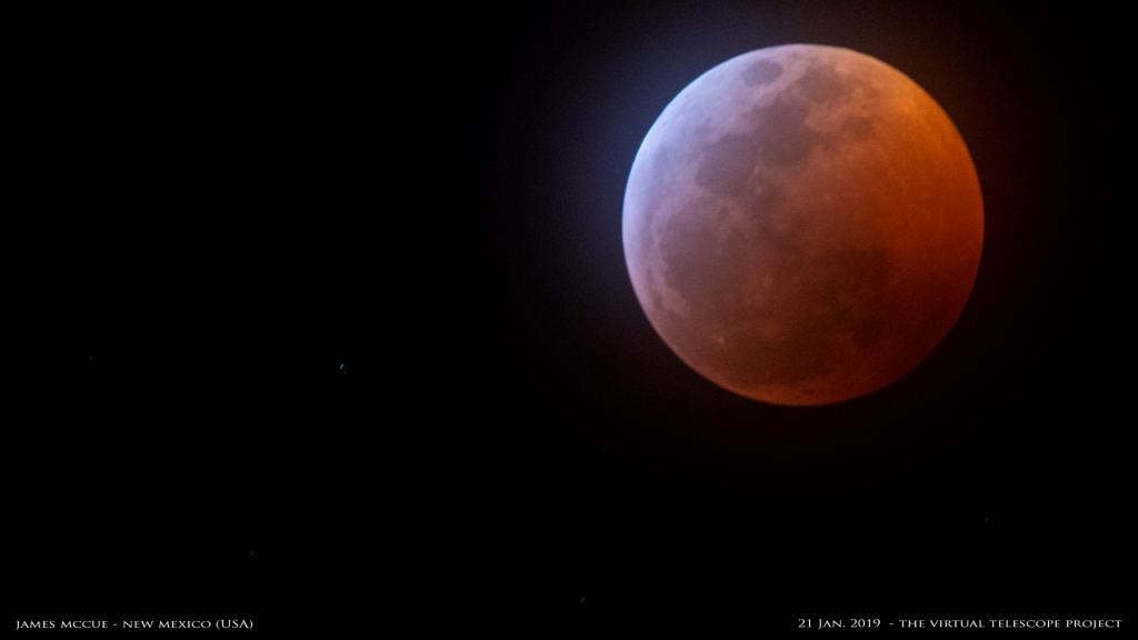 The only total lunar eclipse for 2019 was an amazing spectacle for the Americas late Sunday night on January 20thand early Monday morning on January 21stfor Africa and Europe. Like millions of other observers, we braved chilly January temperatures to watch the Moon take on a ruddy hue during totality. Totality for this total lunar eclipse was also a descent length, at one second shy of an hour and two minutes in duration. We caught the total lunar eclipse from the beach in Tarifa, Spain. We estimate totality was a brilliant Danjon Number of 3 for this total lunar eclipse, as it took on a classic brick-red tone near mid-totality.