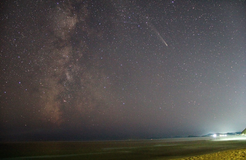 "I drove north for more than three hours, and reached the seashore facing the Sea of Japan after sunset," says astrophotographer Hisayoshi Kato on Flickr, "It was fortunate that the sky was clear at the site, and I could enjoy the comet sinking into the Sea of Japan (over) the weekend."
