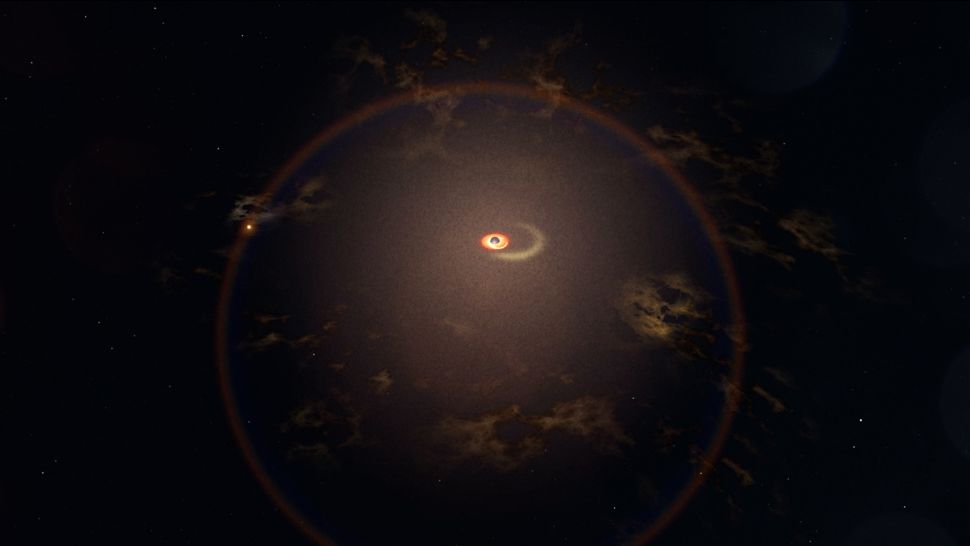 The second was that a star was in orbit around at least one of the black holes, causing disruptions in its disk when it passed between the black hole and the Earth (or behind the black hole as perceived from the Earth). This would cause an asymmetry in the way the flare appears, which has not been observed so far, likely ruling this possibility out.