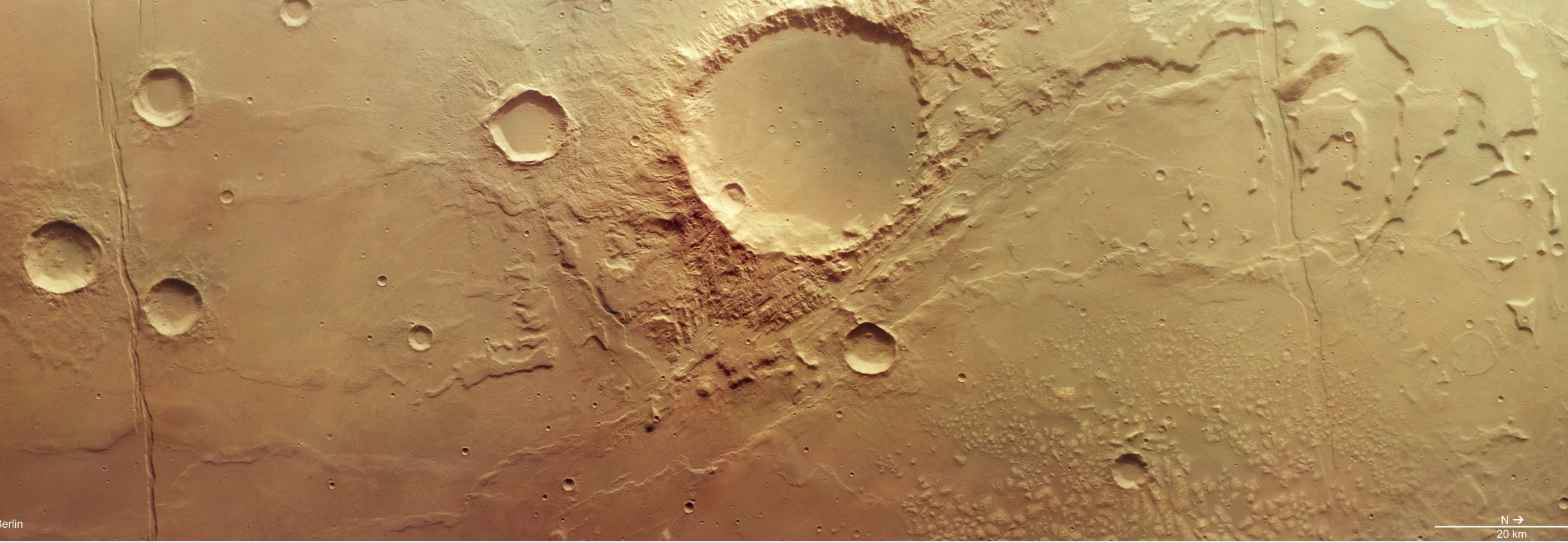 At first glance, it just looks like a vague outline of a depression scrambled and scarred by time, with Mars' ubiquitous impact craters sprinkled throughout the image. But for scientists who study planetary surface features, the image is rife with clues—clues that connect it to Mars' warm and watery ancient past and to the ensuing episodes of change the planet underwent.