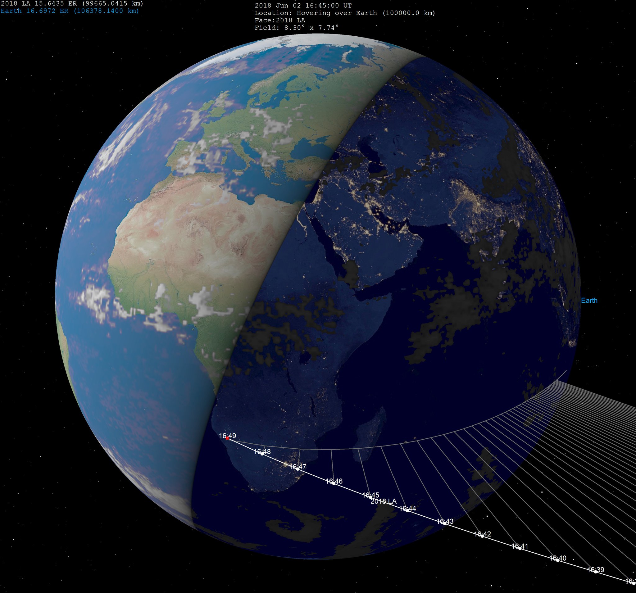 This kind of event happens all the time - they're called "bolides" or "fireballs" - but what make this event different is the fact that the object had been "discovered" just hours before it slammed into the atmosphere. It was first detected by the Catalina Sky Survey, an automated telescope located near Tuscon, Arizona. The telescope imaged the asteroid, later designated 2018 LA, when it was out at the distance of the Moon. It was moving quickly, and left a streak on the time-exposure images taken by the telescope.