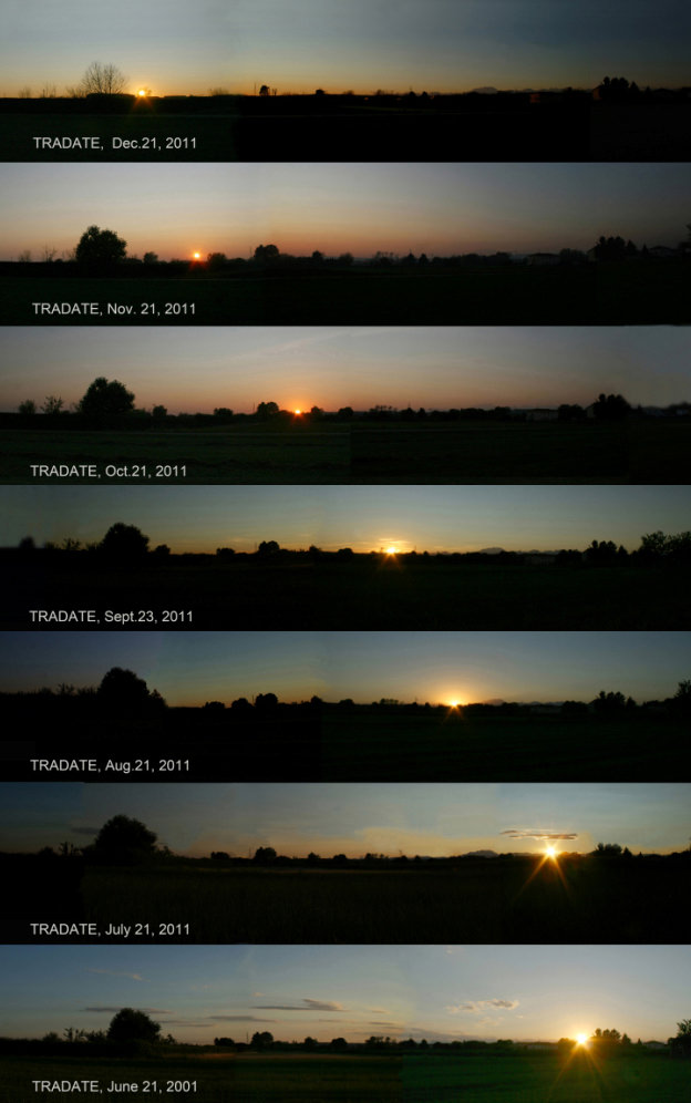 , have been trying for a couple of years to take images of the Sun setting from the same location on the 21st of the month for several months in a row to show the link between the changing seasons and the movement of the Sun in our sky. The group specializes in outreach to schools and had a goal creating a mosaic of sunsets in 2009, the International Year of Astronomy. However, due to cloudy skies, they weren't able to successfully obtain the sunset images until the second half of 2011.