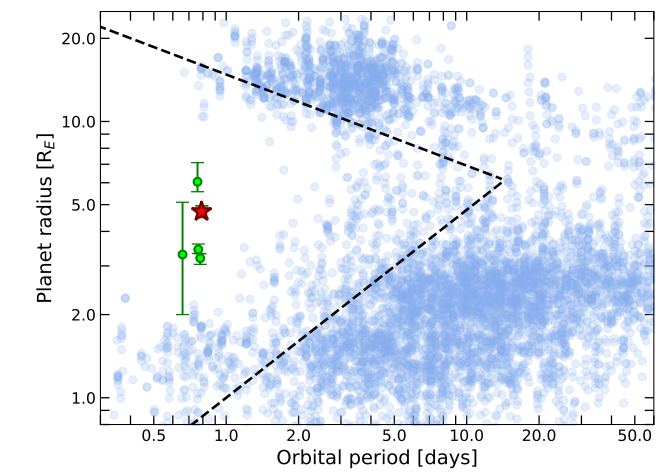 LTT 9779 b is the only known Neptune type planet with an orbital period under one day that has a significant hydrogen/helium atmosphere. In order for the planet to hang onto its atmosphere in such close proximity to its star, something unusual must be happening. "If the Neptune desert is the result of X-ray/EUV-driven photoevaporation, it is surprising that the atmosphere of LTT 9779 b survived the intense bombardment of high energy photons from its young host star," the authors write.