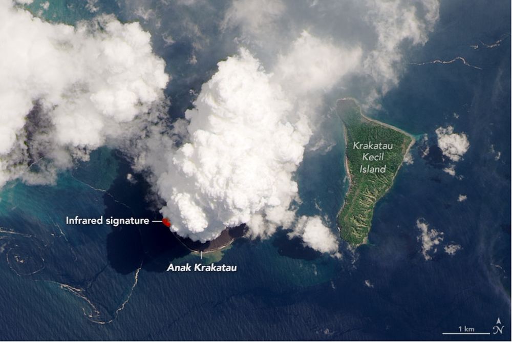 The volcano has been erupting off and on during 2020. In fact, Anak Krakatau has experienced frequent eruptions since 2008. Recently, LandSat 8 captured some images with its Operational Land Imager (OLI.)