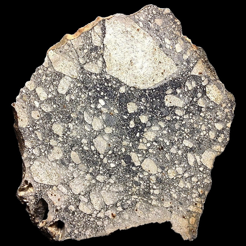 The 311 gram meteorite is a type of lunar volcanic basalt called olivine phyric basalt, containing relatively large crystals of the mineral olivine. Its chemical composition tells a fascinating story, it has moderate levels of titanium, high levels of potassium, and an unusually high uranium to lead ratio that serves as a unique geochemical fingerprint.