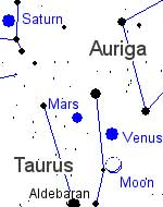 On Saturday, April 24th, the Moon glides away from Mars and toward Saturn, which looks like a bright yellow star. With the Moon beside Saturn to mark its location, you can't miss it. Point your telescope at Saturn: Even a small 'scope will show the planet's lovely rings and it's biggest moon Titan.