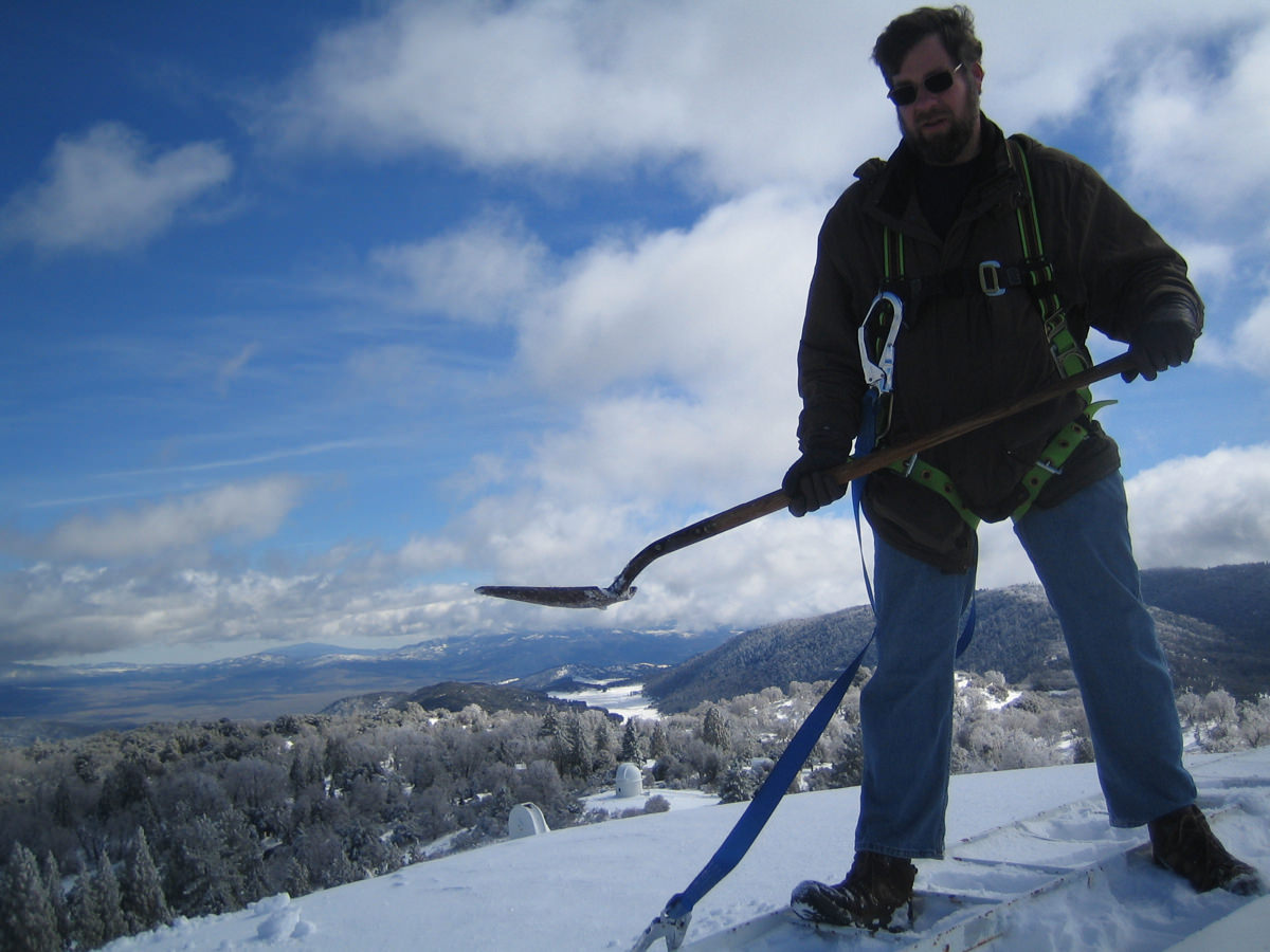 Ah, the glamorous life of an astronomer. Scott Kardel, public affairs coordinator for the Palomar Observatory, found himself on top of the dome of the 200-inch Hale Telescope -- not observing, but shoveling. Snow. Palomar Mountain has been getting its share of the white stuff this winter, and this weekend close to a foot of snow fell in the area. All that snow can cause problems for using the telescope.