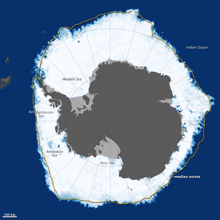 Antarctica's sea ice is creeping further out in the ocean! New data from a Japanese satellite shows that sea ice surrounding the southern continent in late September reached out over 7.51 million square miles (19.47 million square kilometers).