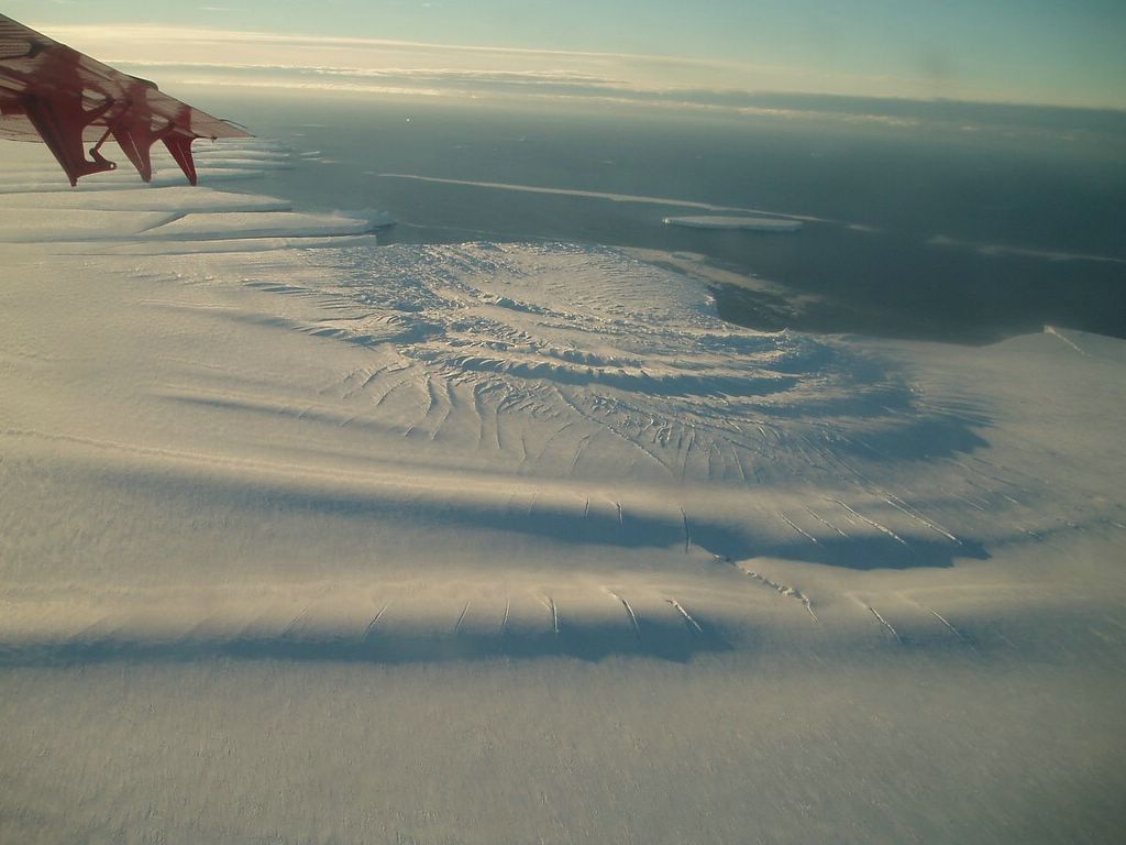 The McDonald Ice Rumples also play a role in this icy drama. Rumples are formed when ice flows over a rocky formation where the bedrock rises high enough to contact the underside of the ice shelf. The bedrock can impede the flow of ice, and that causes rifts, crevasses, and pressure waves. None of those are good for stability.