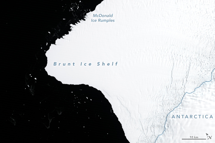"The near-term future of Brunt Ice Shelf likely depends on where the existing rifts merge relative to the McDonald Ice Rumples," said Joe MacGregor, a glaciologist at NASA's Goddard Space Flight Center. "If they merge upstream (south) of the McDonald Ice Rumples, then it's possible that the ice shelf will be destabilized."
