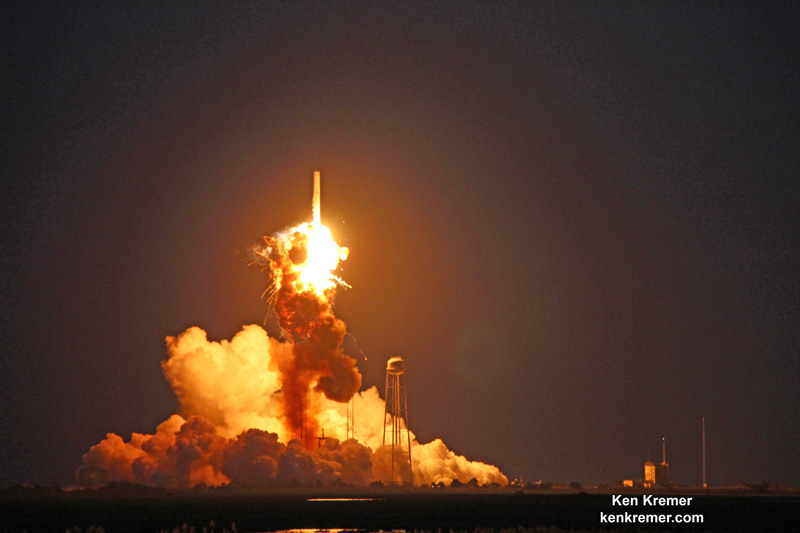 Blastoff of the 14 story Antares rocket took place from the beachside Launch Pad 0A at the Mid-Atlantic Regional Spaceport (MARS) at NASA Wallops situated on the eastern shore of Virginia.