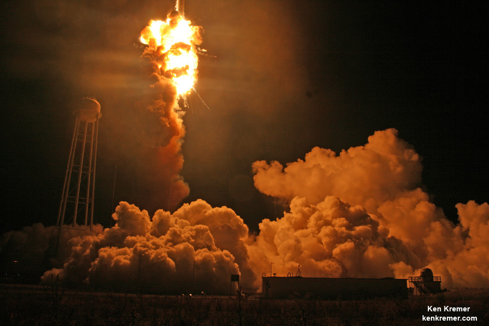 Video Caption: This up close launch pad camera view is a time lapse sequence of images showing the sudden catastrophic explosion of Orbital Sciences Antares Orb 3 rocket seconds after blastoff and destructive incineration as it plummets into a hellish inferno at NASA's Wallops Flight Facility, VA, on Oct. 28, 2014, at 6:22 p.m. Credit: Ken Kremer - kenkremer.com/Universe Today/AmericaSpace/Zero-G News. Story and images expanded