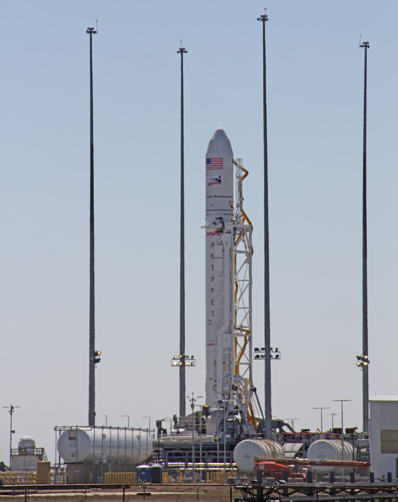 Now that Antares stands vertical, "We are on a clear path to a launch date of April 17, provided there are no significant weather disruptions or major vehicle check-out delays between now and then," said Mr. Michael Pinkston, Orbitals Antares Program Manager.