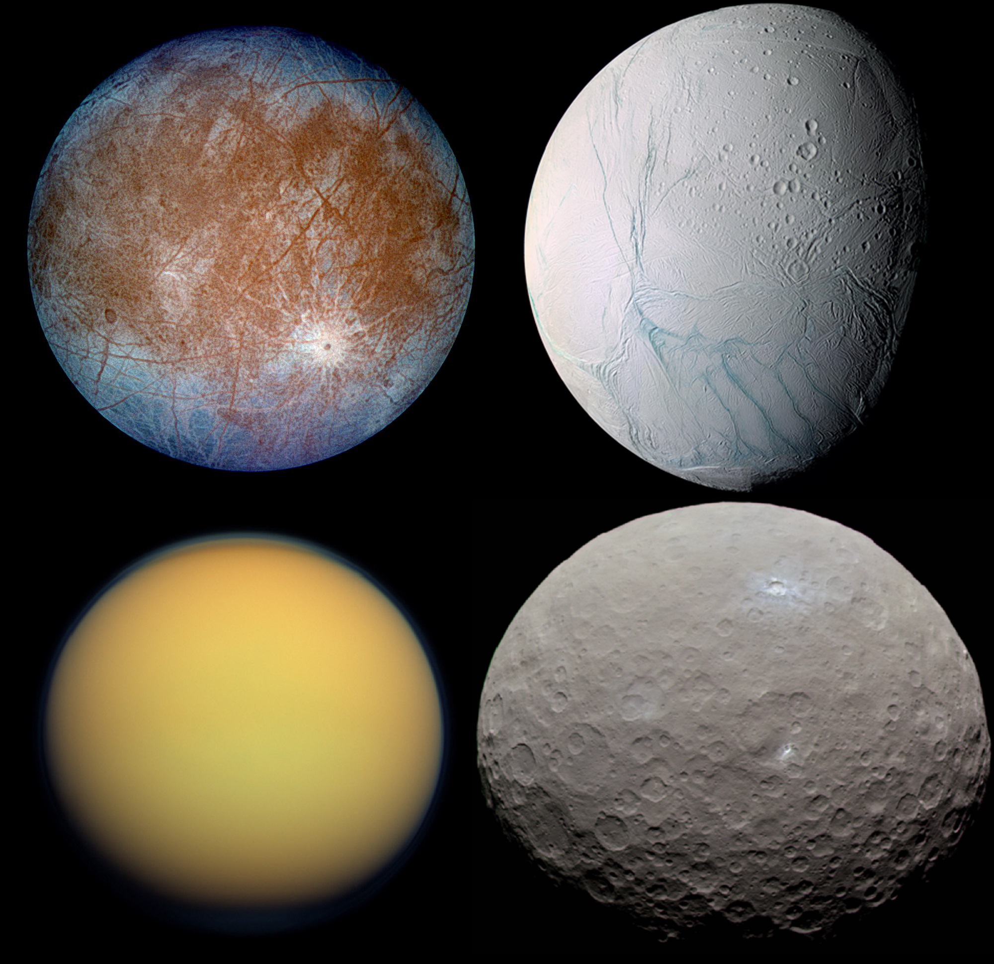 " that could potentially host life, including Ceres, Ganymede, Enceladus, Titan, Dione, Triton, and maybe even Pluto.