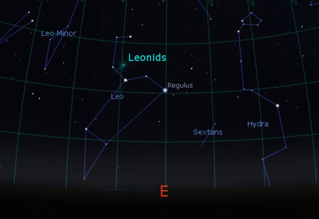 If skies are clear, the best strategy is to simply stand out and watch at the appointed time. The Leonids tend to be swift-moving, and the radiant sits in the center of the Sickle of Leo Asterism, assuring that the shower isn't very apparent until after local midnight when the radiant has risen high in the sky. The Moon will have moved off a bit, and will have slimmed down to a 22% illuminated waning crescent by Saturday morning, another plus.