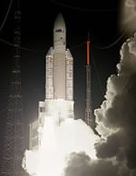 Flight 161 was carried out by an Ariane 5 Generic launcher from Europe's Spaceport in Kourou, French Guiana. Liftoff was on Wednesday, June 11, 2003 at 7:38 p.m. local time in Kourou (22H38 GMT, 6:38 p.m. in Washington, D.C., 12:38 am in Paris on June 12, and at 7:38 am in Tokyo and 8:38 am in Sydney on June 12).