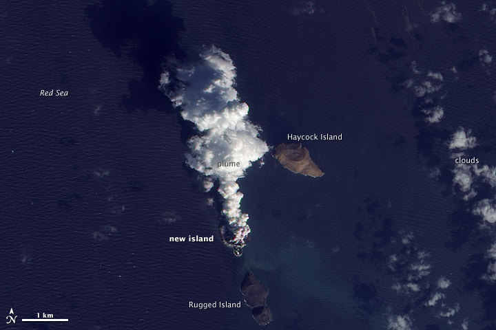, the volcanic activity occurred along the Zubair Group, a collection of small islands off the west coast of Yemen. The islands poke above the sea surface, rising from a shield volcano. This region is part of the Red Sea Rift where the African and Arabian tectonic plates pull apart and new ocean crust regularly forms.