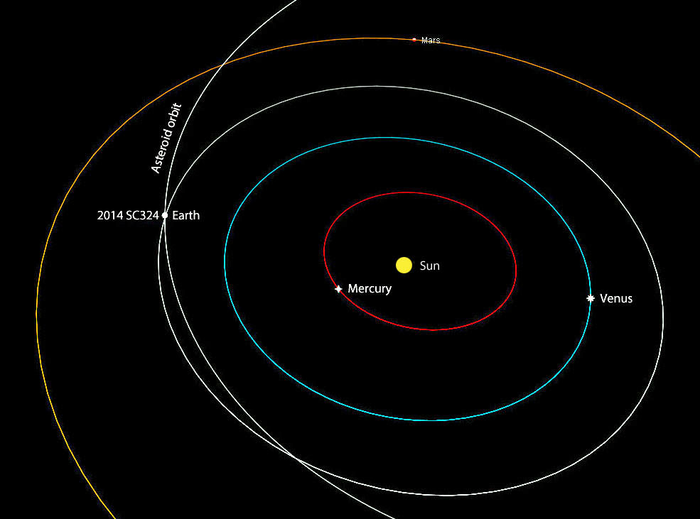 Closest approach happens around 2 p.m. CDT (7 p.m. UT) Friday afternoon when our fast friend misses Earth by just 351,000 miles (565,000 km) or 1.5 times the distance to the Moon. This is a very safe distance, so we can finish up our lunches without a jot of concern. But the asteroid's combination of size and proximity means amateur astronomers with a 10-inch or larger telescope will be able to track it across the sky beginning tonight (Oct. 23) and continuing through tomorrow night. 2014 SC324 should shine tolerably bright this evening at around magnitude +13.5.