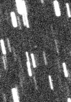 Three 90-second exposures showing WT1190F zipping across the Rosette Nebula taken on Nov. 11, 2015 at the Konkoly Observatory in Hungary. Credit: Krisztián Sárneczky[/caption]