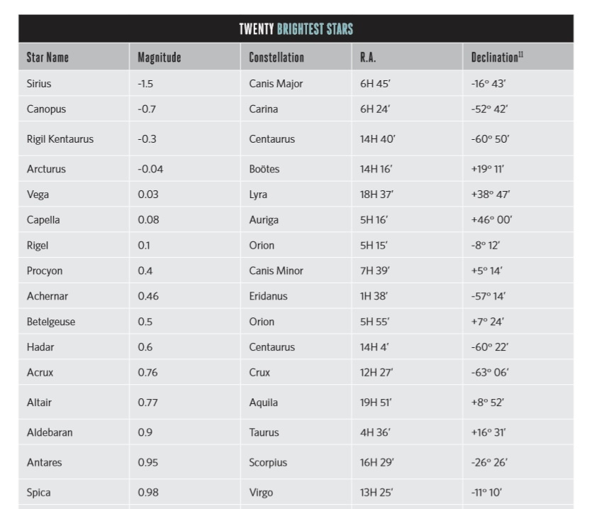 Watch the daytime sky for longer spans of time, and still stranger sights may be seen. The Moon can occult four +1 magnitude stars (Aldebaran, Antares, Spica and Regulus) in our current epoch, and these can all be seen near the lunar limb with binoculars just before or after the Moon covers them up. This first magnitude cutoff also puts 16 stars within reach under pristine daytime skies: